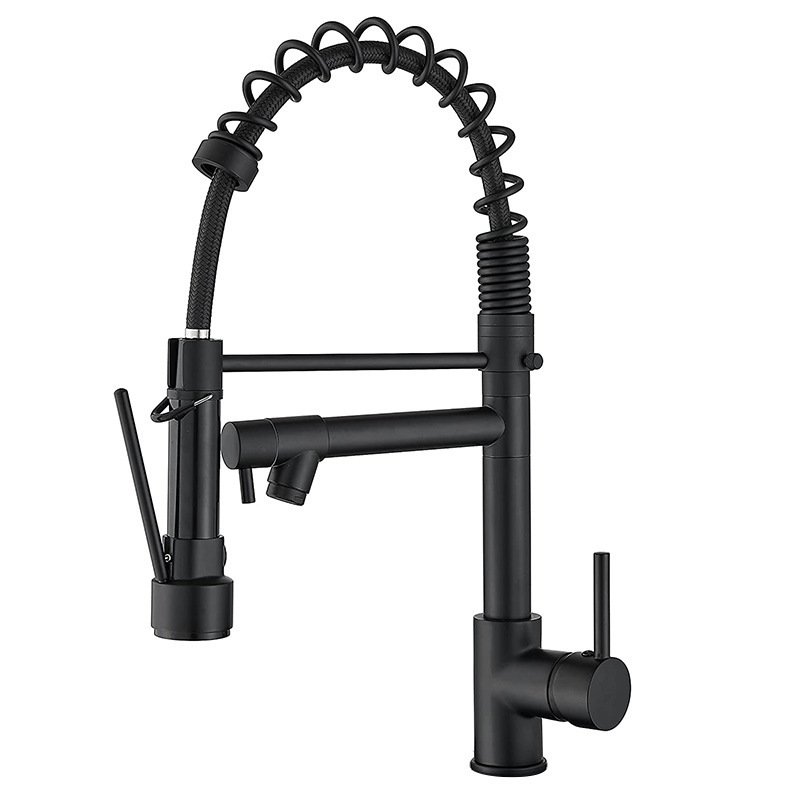 New Modern Style 304 Stainless Steel Matt Black Kitchen Faucet Sink Mixer With Pull Down
